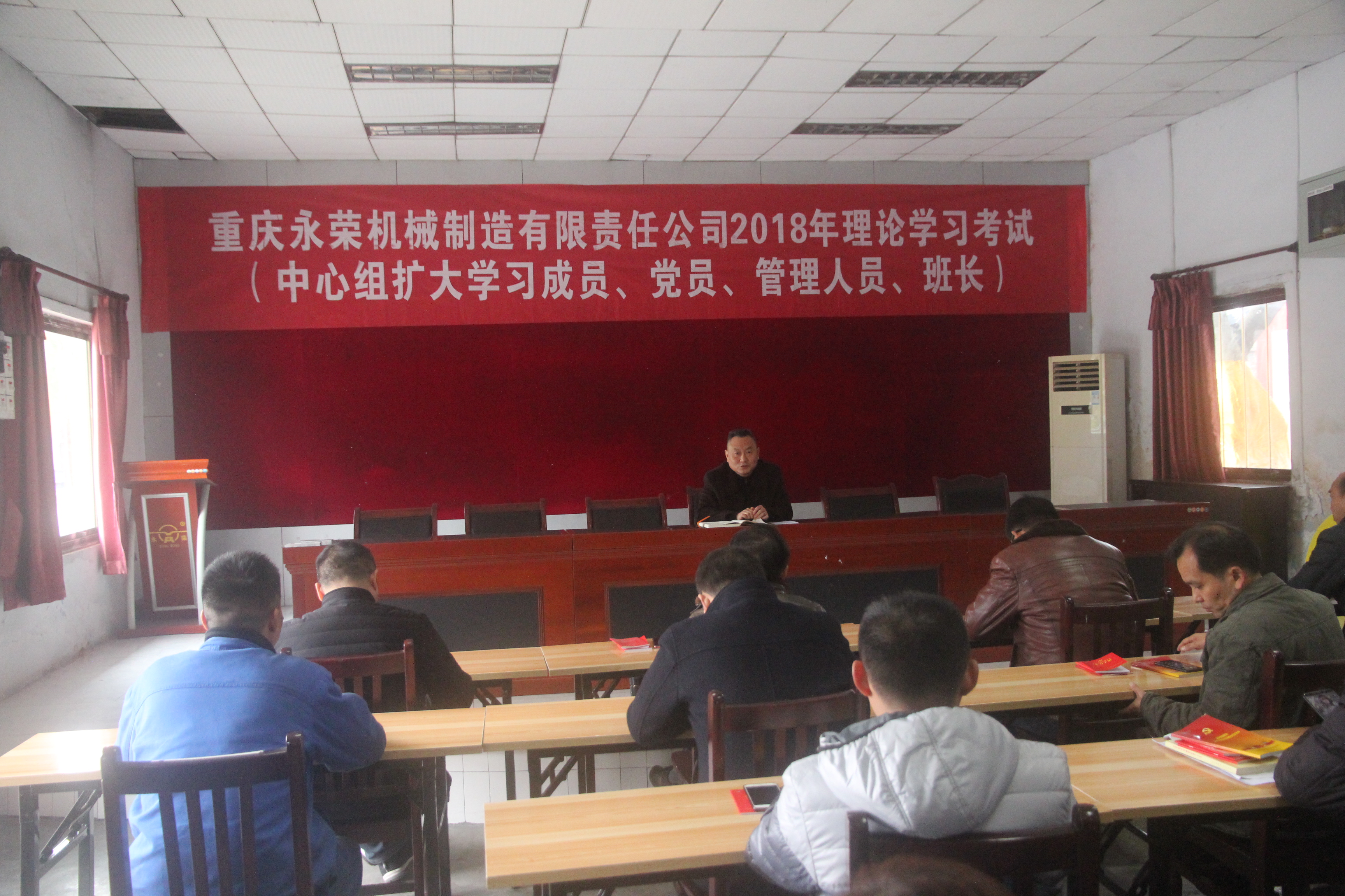 為檢驗(yàn)和鞏固一年來的理論學(xué)習(xí)效果,11月26日下午,永榮機(jī)制公司黨委在二會(huì)議室組織開展了2018年理論學(xué)習(xí)考試,共69名擴(kuò)大中心組學(xué)習(xí)成員、黨員、管理人員、班長(zhǎng)參加了此次考試,黨委書記蒲江平同志到現(xiàn)場(chǎng)監(jiān)督考試并作考前講話。