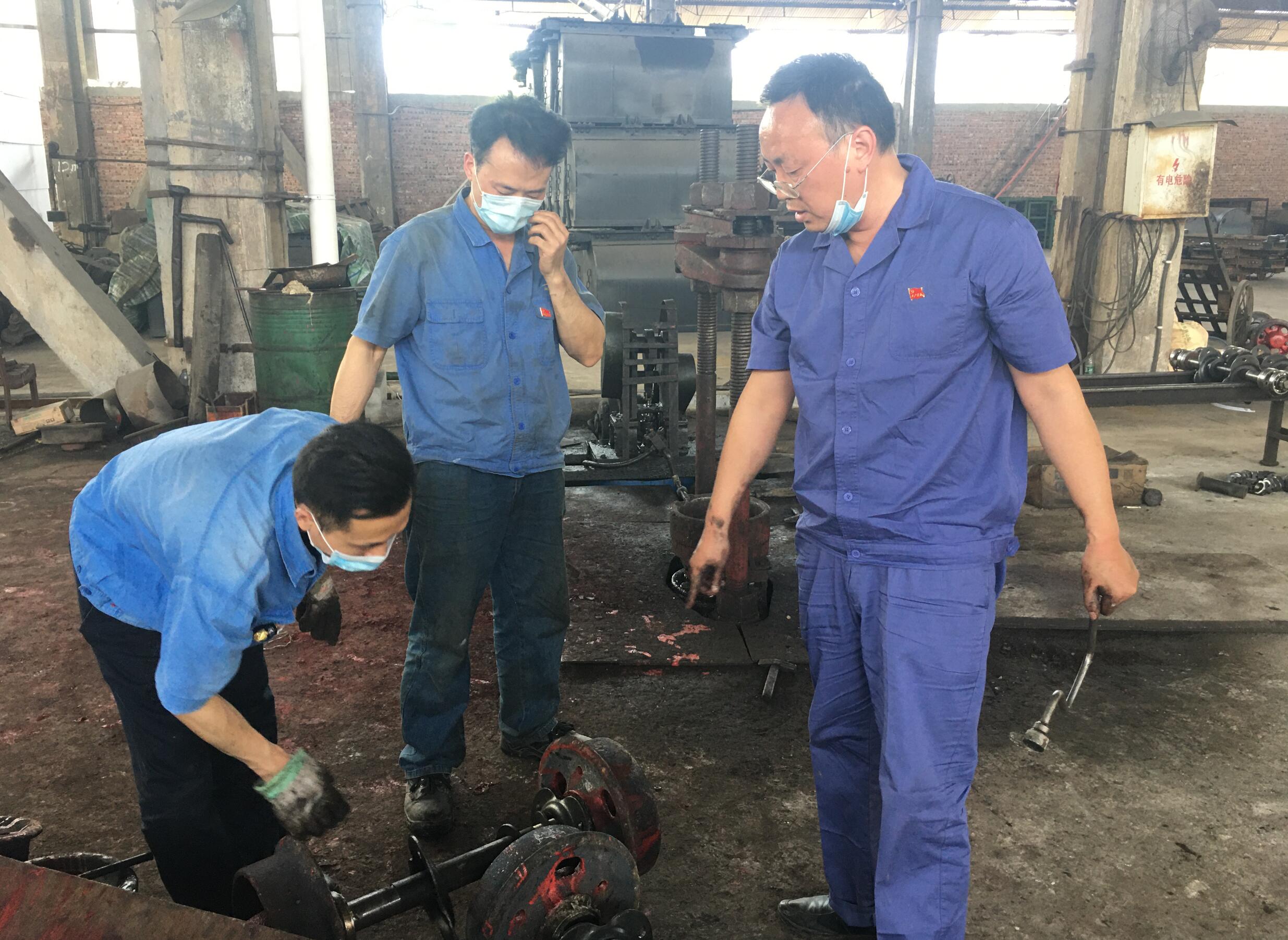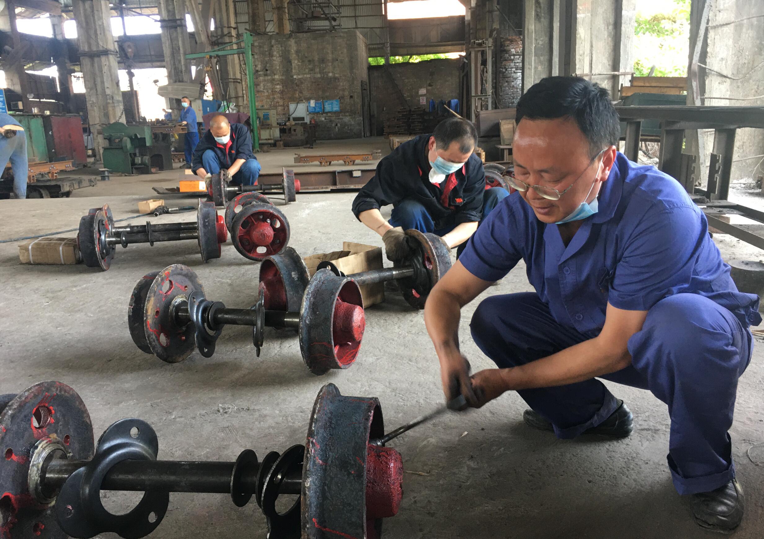五一前夕,為按時向客戶交付訂單,礦檢車間黨支部組織黨員突擊生產(chǎn)任務,30部礦車輪對半天突擊完成。